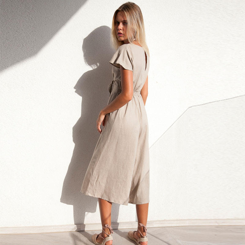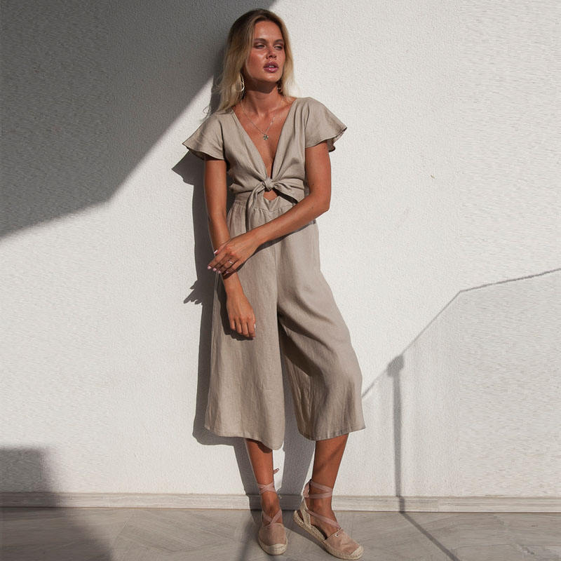 Name:Wholesale Front Twist Women Linen Loose Jumpsuit