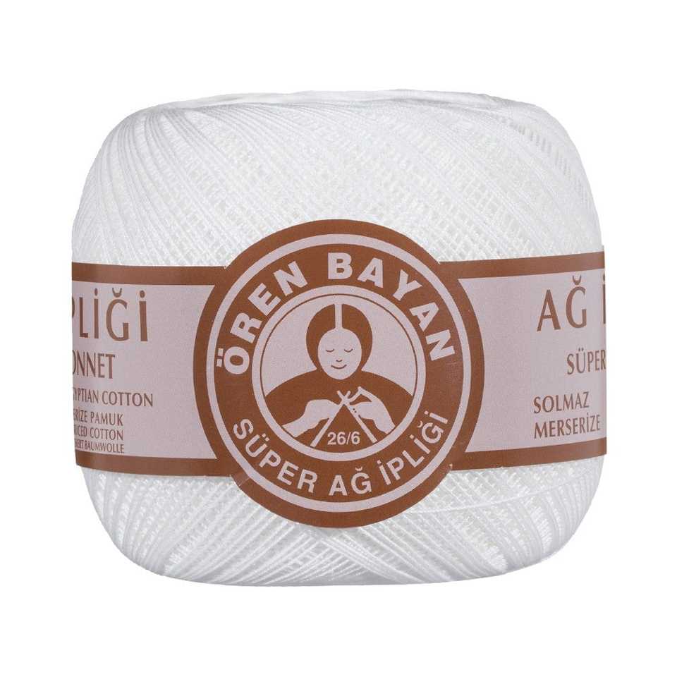 Ören Ladies White 26/6 Net Yarn Organic Cotton Open-End Knitting & Crochet Hand Knitting Embroidery