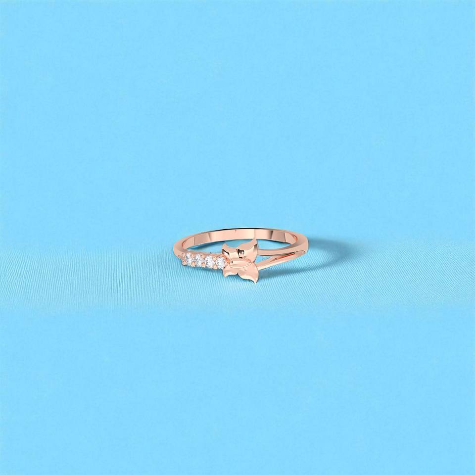 0.07 Carat E-F/VVS-VS Moissanite Round Cut Diamond Prong Set Butterfly Shape Ring 10K 14K 18K Solid Gold