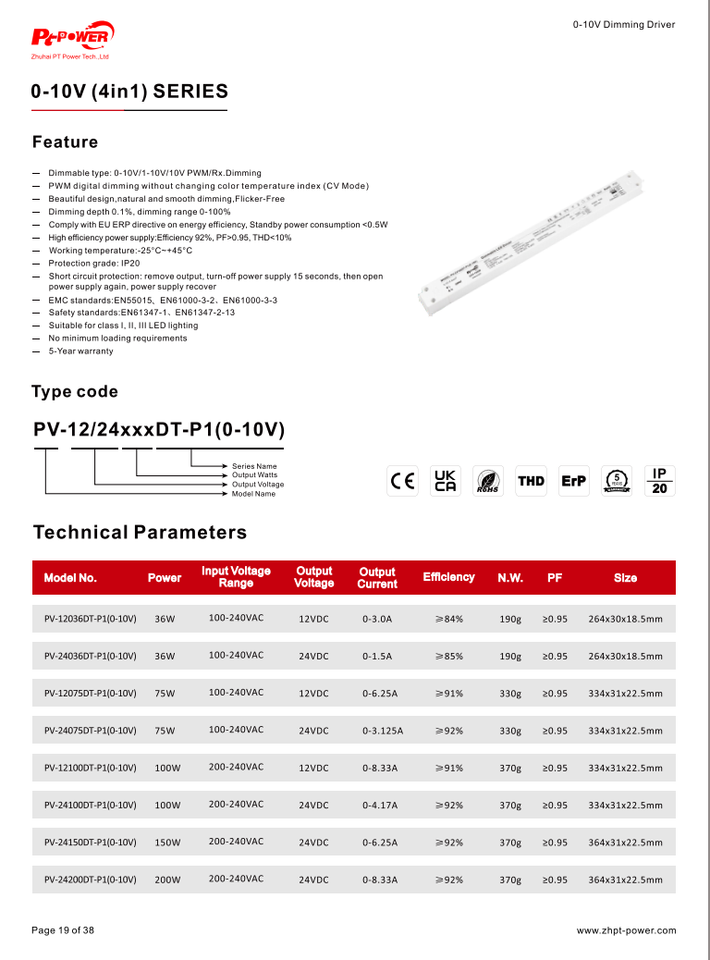Dimming:0-10V1-10V/10V PWM/Rx.(4 in 1)