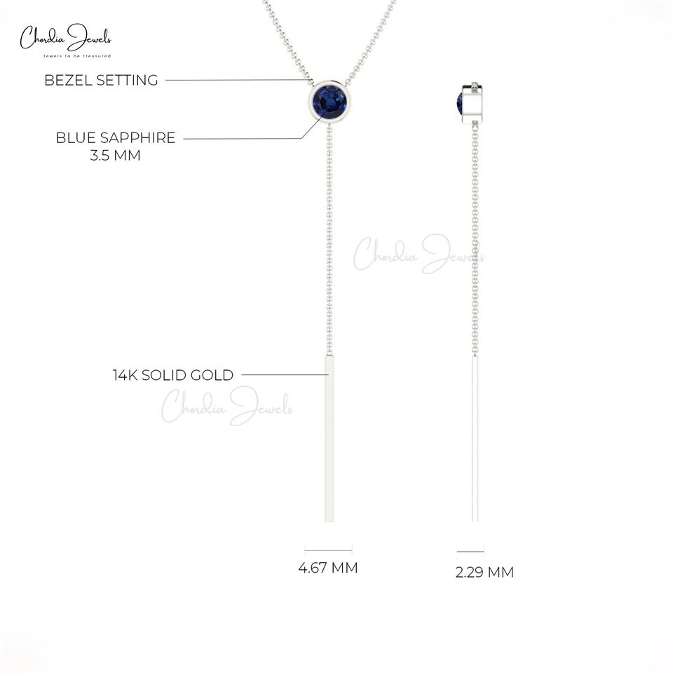 0.23CT Round Stone Blue Sapphire Necklace 14k Pure Gold Long Chain Lariat Necklace September Birthstone Jewelry With Minimum MOQ