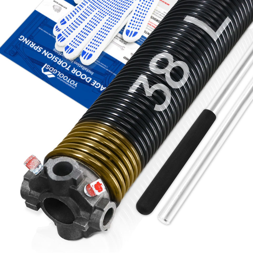 0.250X2"X38"-L High Precision Left Hand Wind Garage Door Torsion Spring (Black Cone) with Non-Slip Winding Bars & Gloves