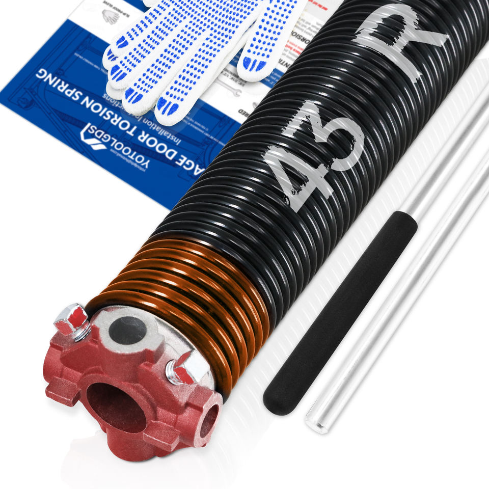0.273X2"X43"-R High Precision Right Hand Wind Garage Door Torsion Spring (Red Cone) with Non-Slip Winding Bars & Gloves
