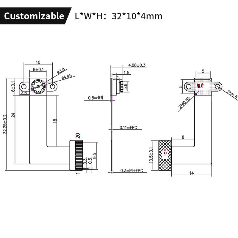 0.3 Megapixel GC0308 Macro Scanning Code Recognition Smart Door Lock FPC HD Camera Module Support ESP32