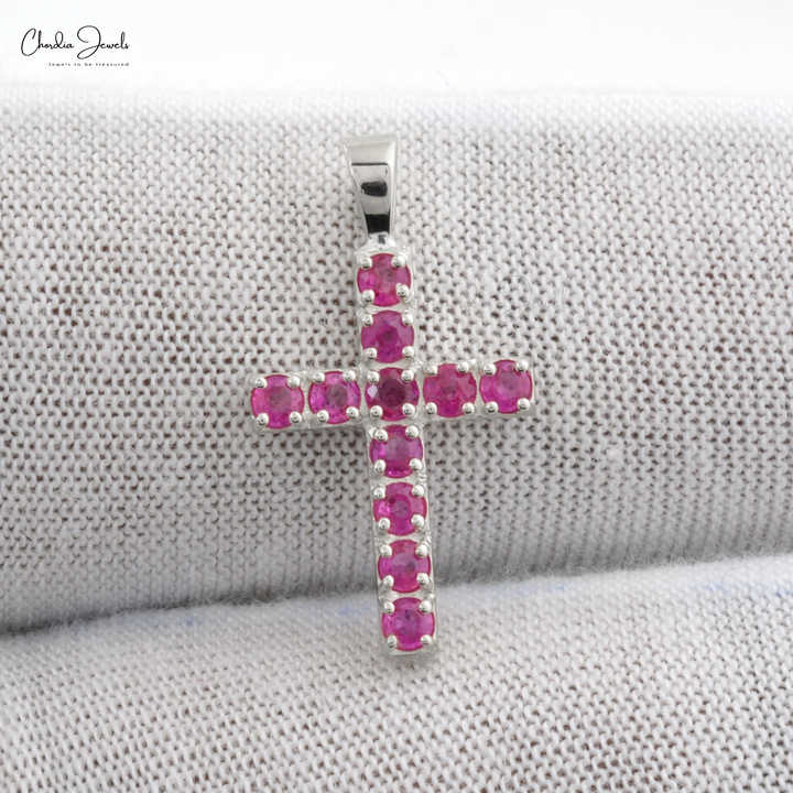 0.33 Cts Natural Ruby Cross Pendant Dainty Religious Pendant at Wholesale Price 14k White Gold Gemstone Handmade Pendant