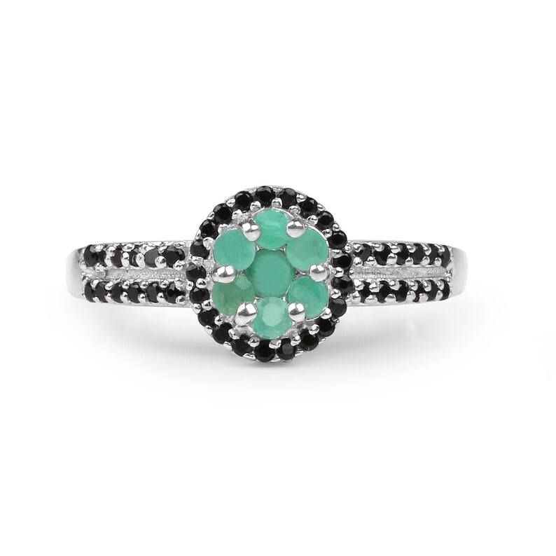 0.55 CARAT GENUINE EMERALD AND BLACK SPINEL 925 STERLING SILVER RING for Anniversary Wedding Engagement Rings