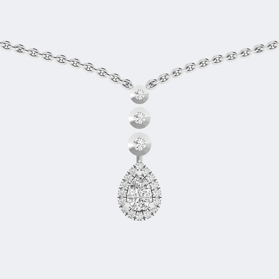 0.60CTW Round Diamond Halo Bezel Pendant Necklace Gold Lab Grown E Color VVS2 Minimalist Jewelry for Women 18 Inch