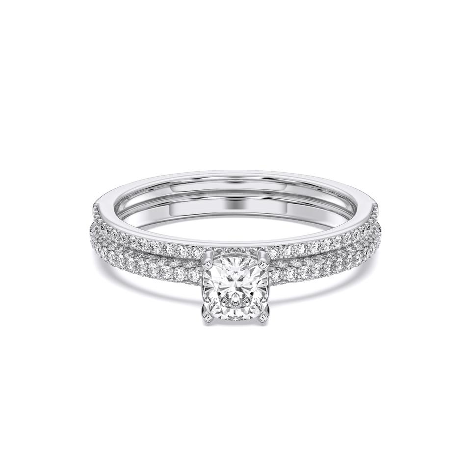 0.90 Carat Center Cushion Cut E-F/VVS-VS Moissanite Round Diamond Wedding Ring 925 Sterling Silver for Her
