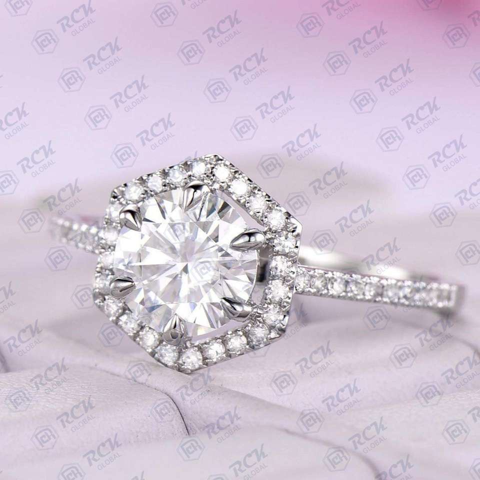 0.90 TCW round Brilliant Cut Halo Moissanite Ring for Women Wedding or Party Gift Anniversary for Her