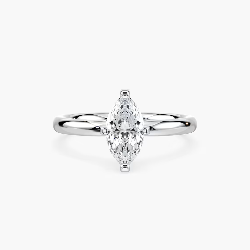 1.00 CT Elongated Marquise Cut Lab Grown Diamond Engagement Ring Solitaire Setting 14K Solid Gold Classic Bridal Ring for Women