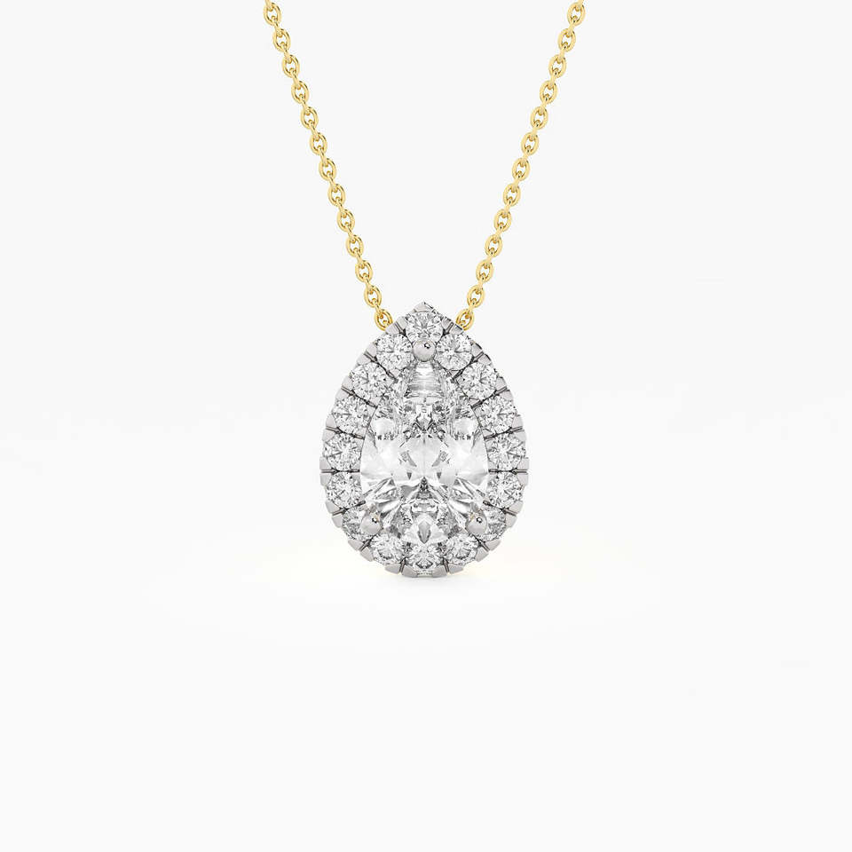 1.00 Ct. Tw. Lab Grown Moissanite Fancy Pear Cut Pendant Halo 18K Yellow Gold Engagement Wedding Party Strand Chain Anniversary