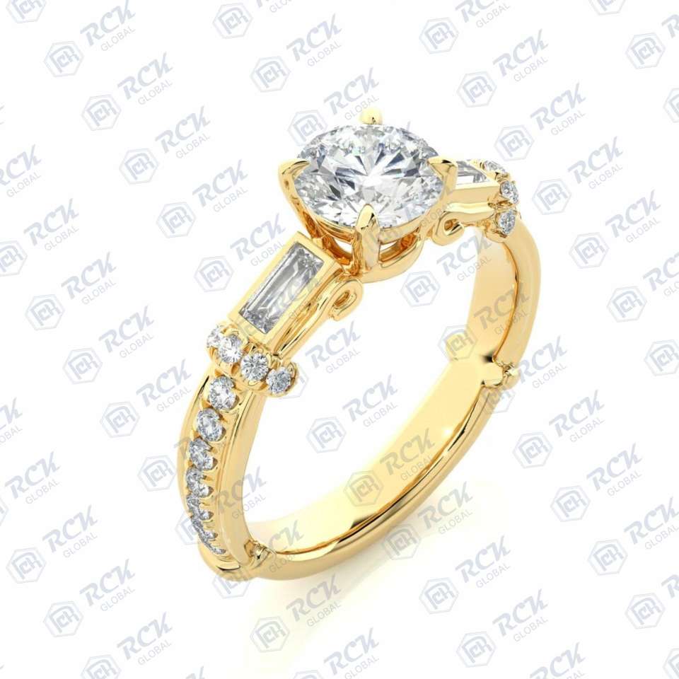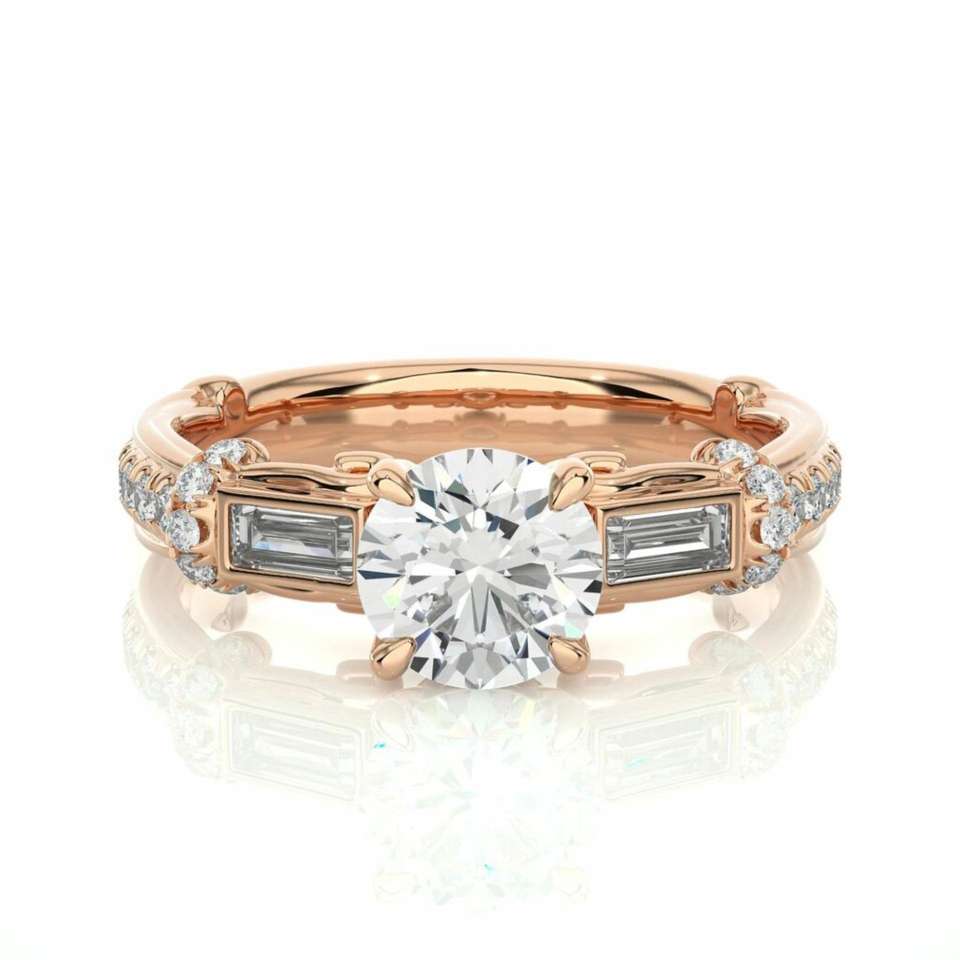 1.00 TCW Brilliante Cut Unique Three Stone Moissanite Ring Women's Anniversary/Birthday Gift with Side Baguette Elegant Jewelry