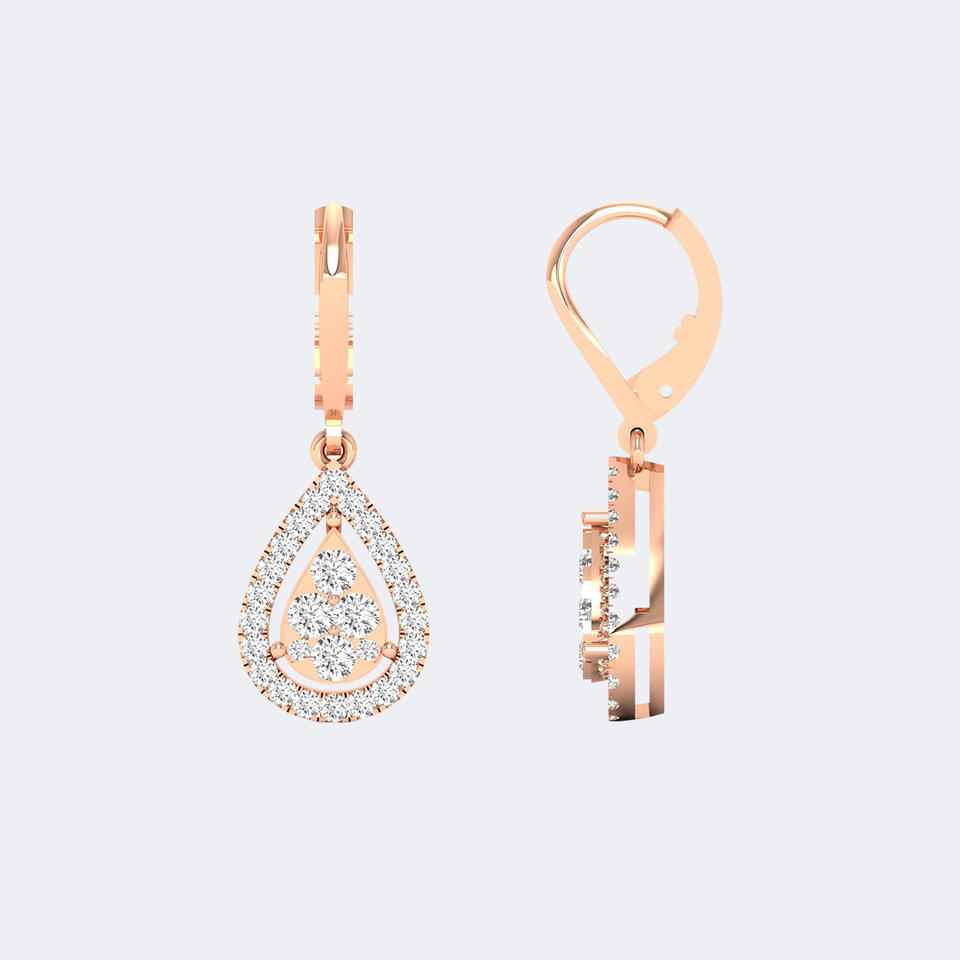 1.00CTW Round Diamond Halo Cluster Drop Earrings 14k Gold Lab Grown D VVS Leverback Dangle Pave Setting Jewelry for Women