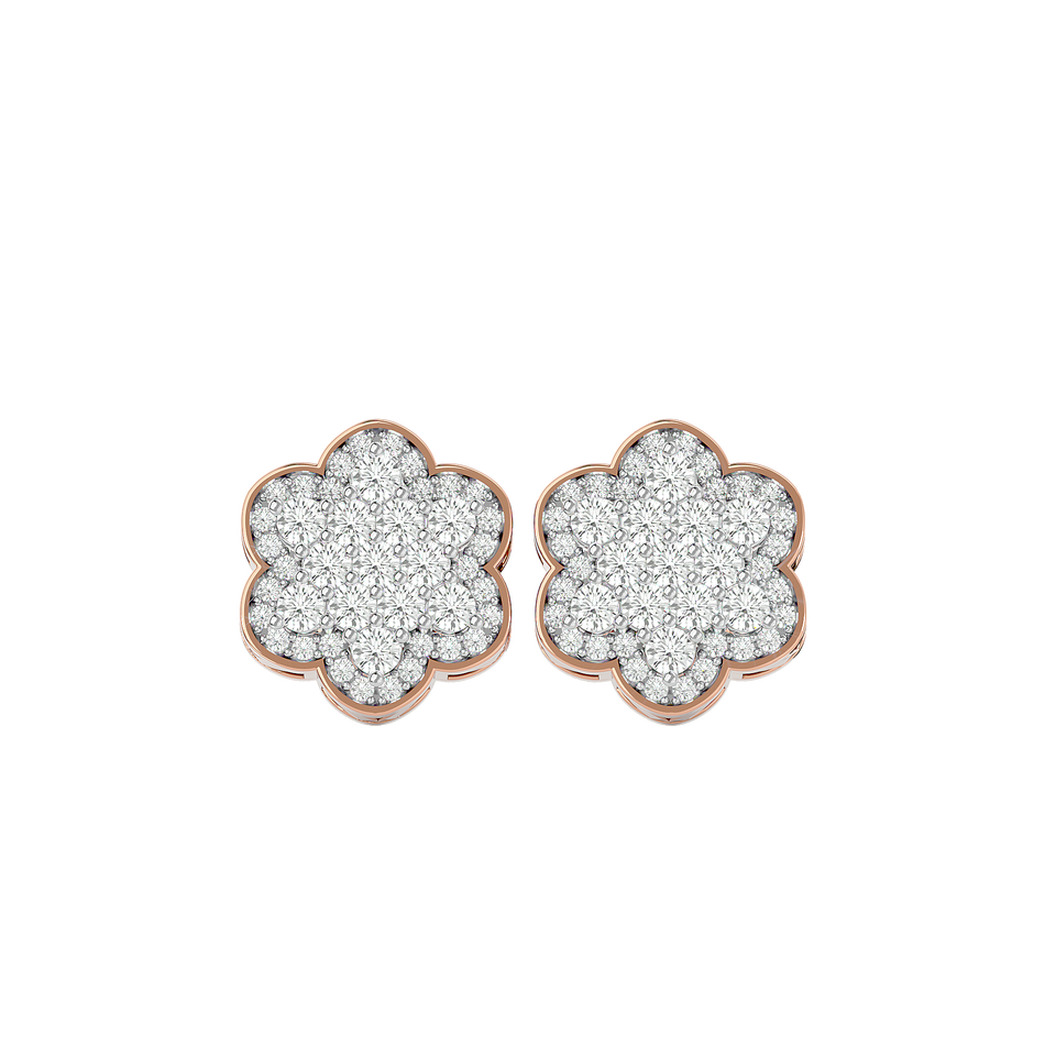 1.00TCW Round Diamond Ladies Flower Cluster Stud Earrings 10K Gold in Rose/White/Yellow