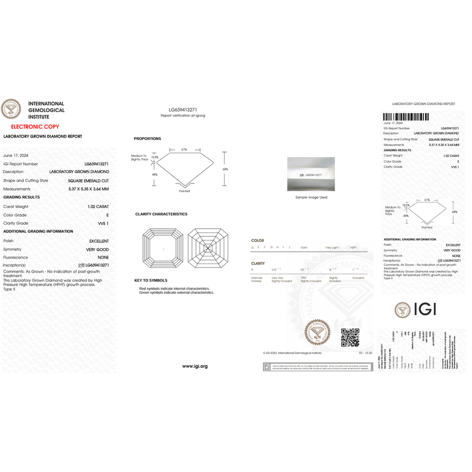 1.02 CT E Color VVS1 Square Emerald Cut Lab-Grown Diamond Earrings IGI Certified