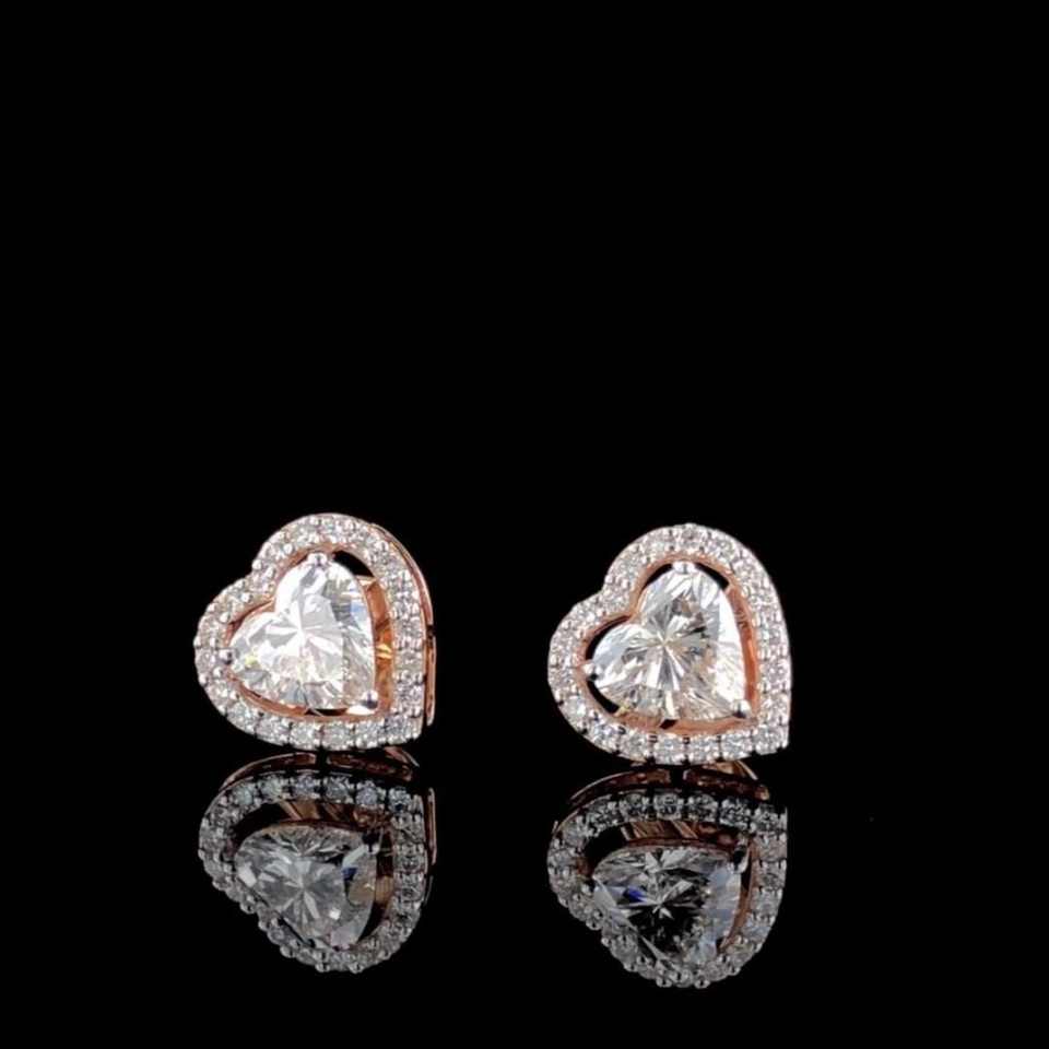 1.11CT Heart Cut Lab Grown Diamond Stud Earrings 14K Solid Gold Halo Jewelry Engagement Party Bridal Gift for Partner