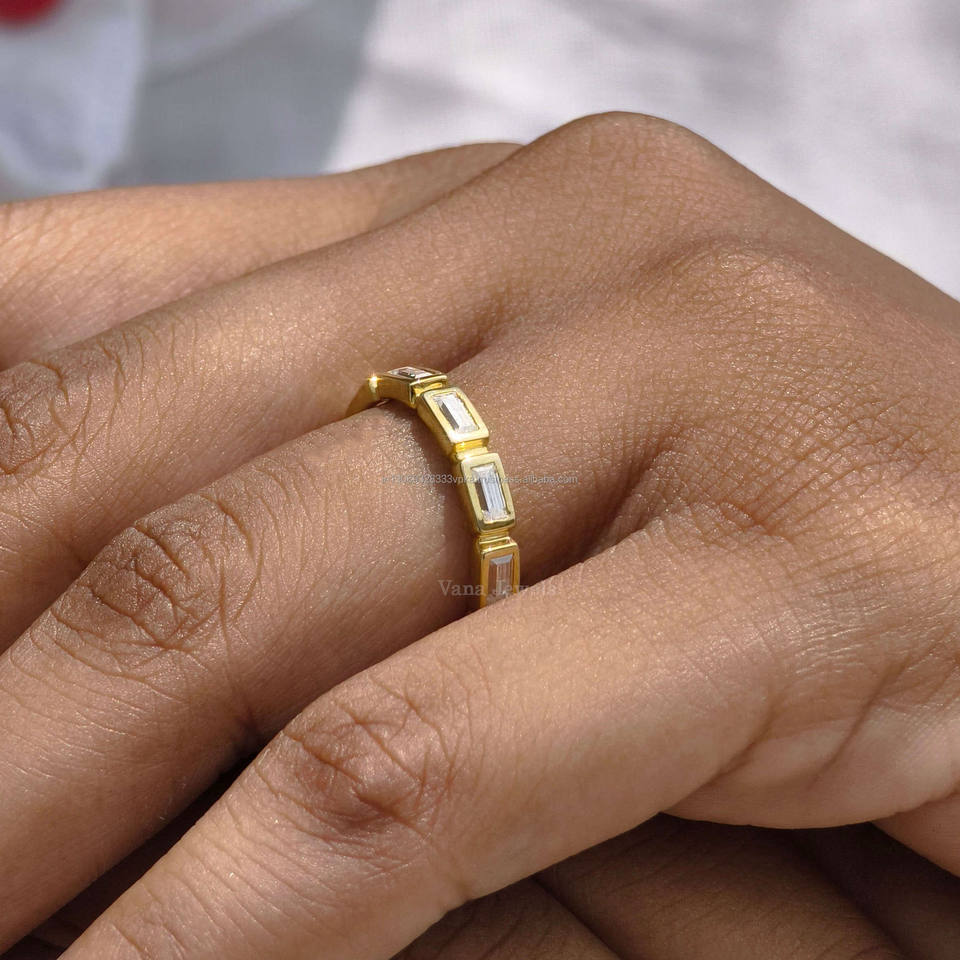 1.16 TCW Baguette Cut Moissanite Wedding Band 925 Silver Bezel Setting Trendy Full Eternity Stackable Style Anniversary Gift