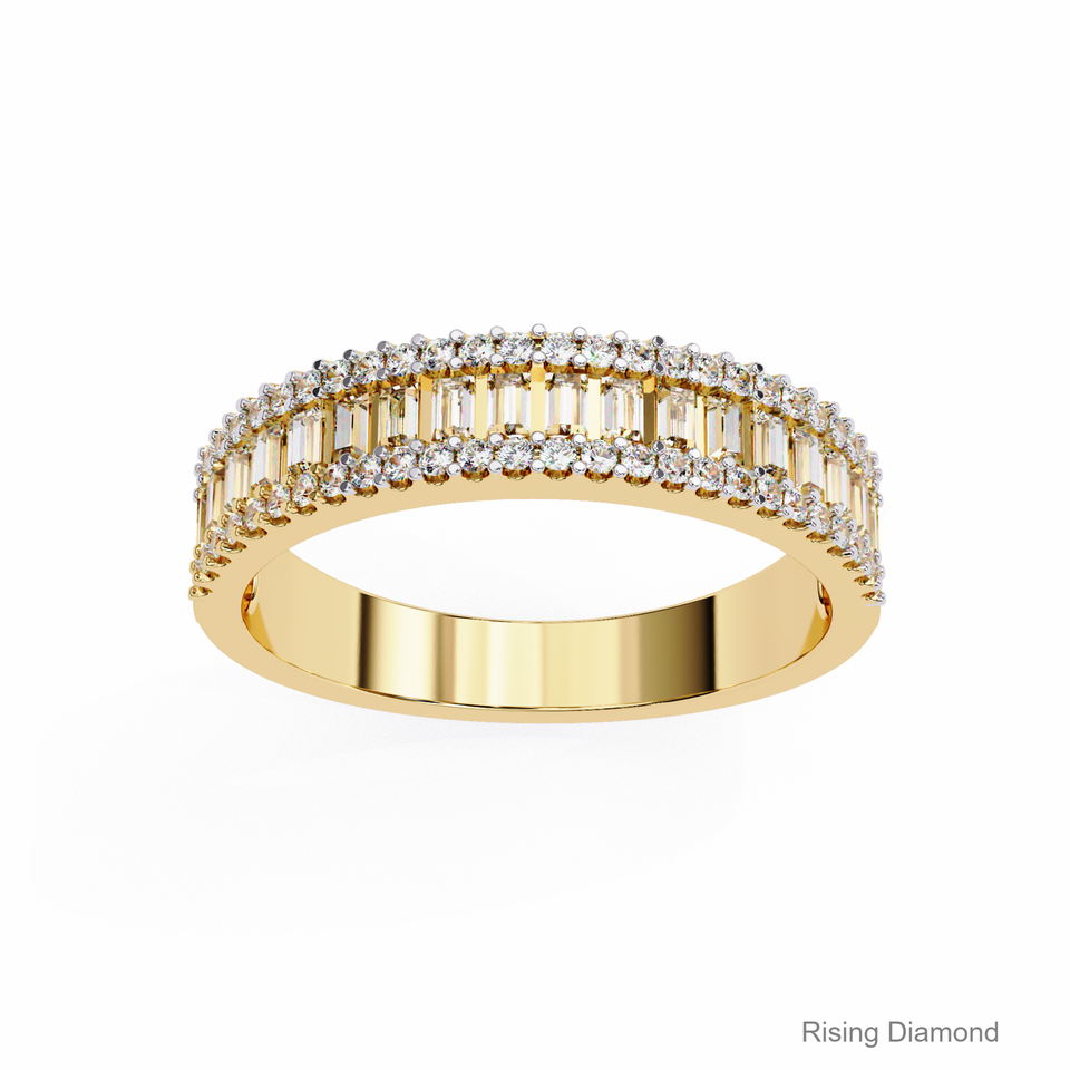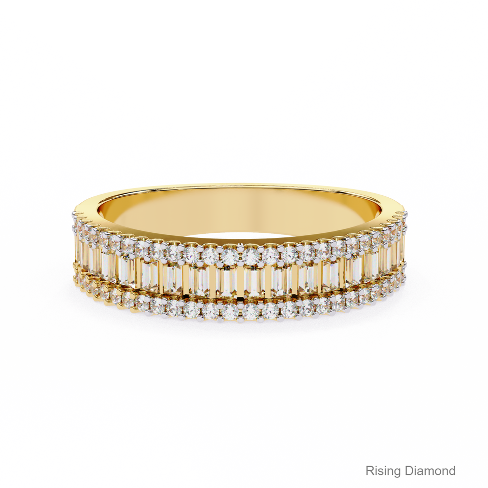 1.2 CTW Baguette Cut Lab Grown Diamond Half Eternity Set Yellow Gold Wedding Band Anniversary Gift Rings CVD Diamond Rings