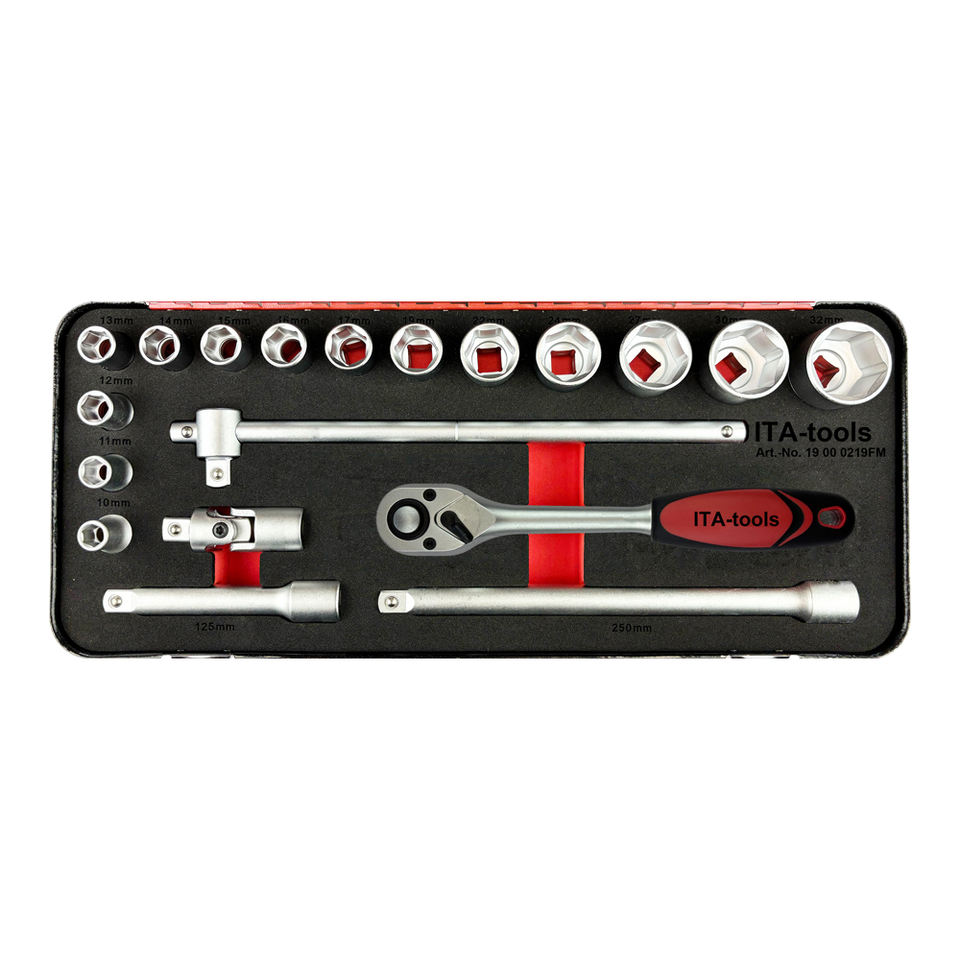 1/2"Dr. Metric Size 19 PCS Socket Wrench Set Hand Tool Set Mechanic Tool Socket Set Mixed Ratchet Handle