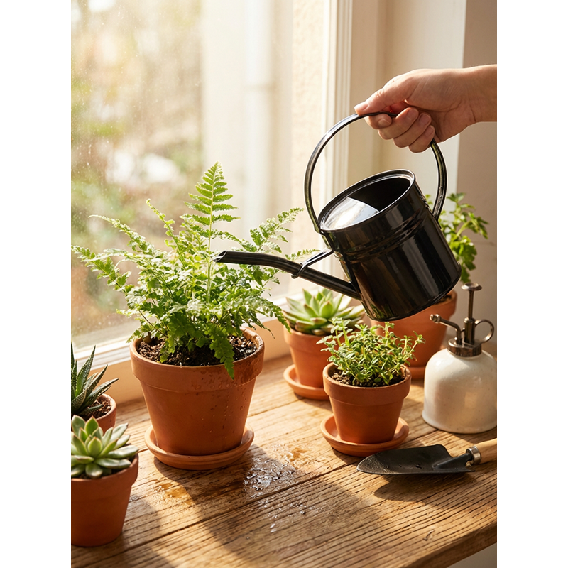 1.2 Litre Brass & Iron Round Metal Watering Can Indoor & Outdoor Compact Design with Striped & Fixed Pouring Spout