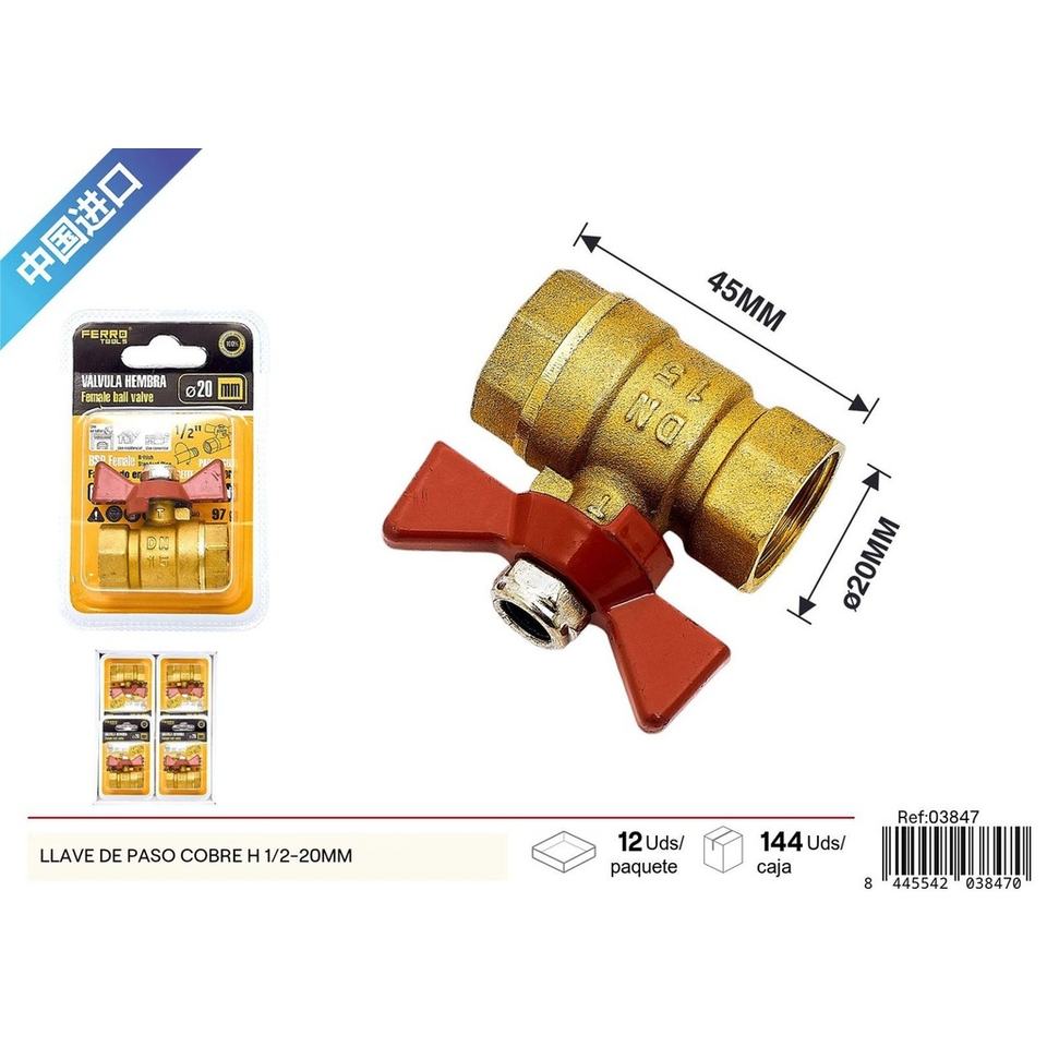 1/2" copper pipe connector with stopcock, H 20 mm - Plumbing accessories