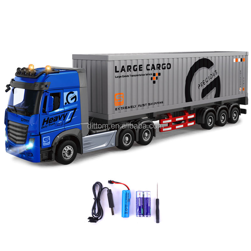 1/24 RC Alloy Container Truck 2.4G 9CH Engineering Transport Lorry Vehicle Diecast Toys with Light Music