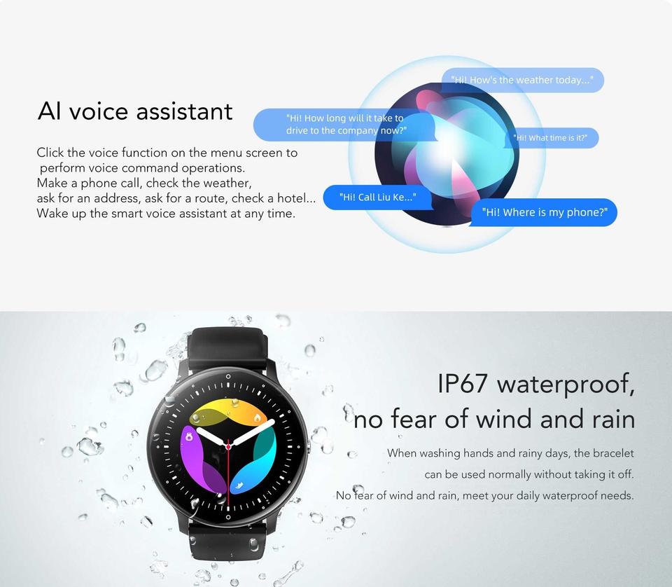 Alarm Clock, Fitness Tracker, Answer Call, Push Message, Interactive Music, WORLD TIME, AI voice assistant, Sleep Tracker, Message Reminder, Dial Call, Heart Rate Tracker, Voice Call, Breath Monitor, Music Playerfunction