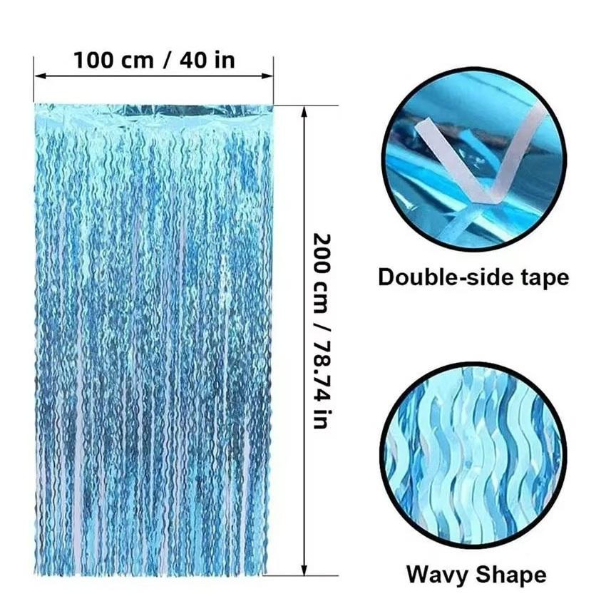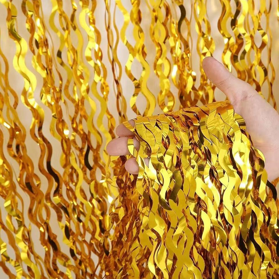 1*2M Ceramic S-Shaped Curved Laser Foil Curtain Background Wave Fringe Curtain Tinsel Photo Backdrop Birthday Party Decorations
