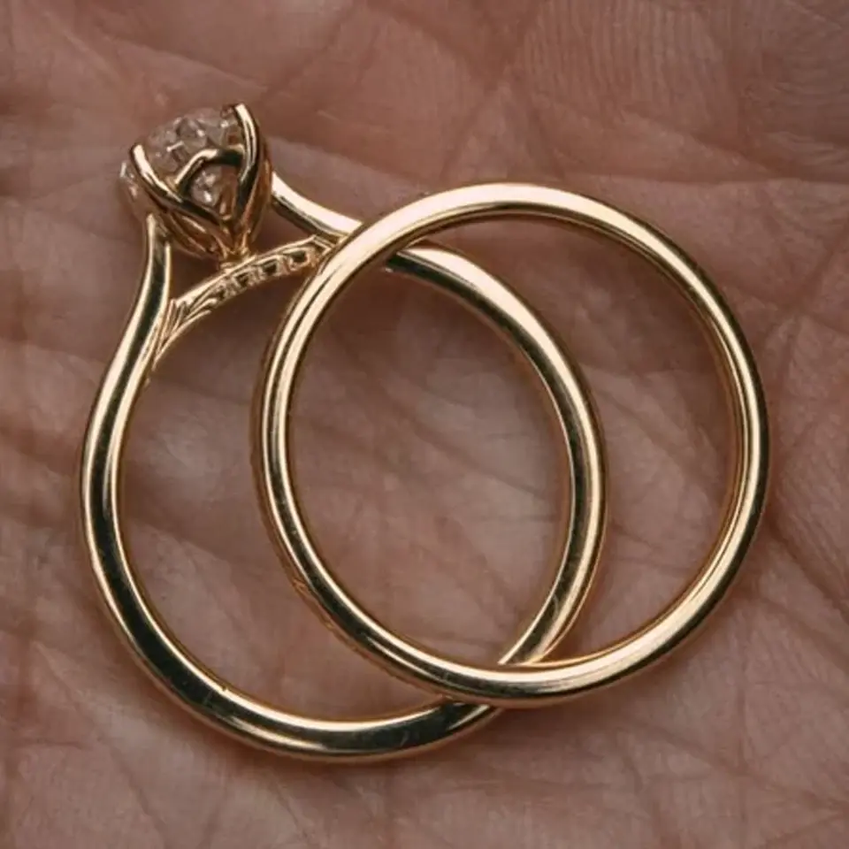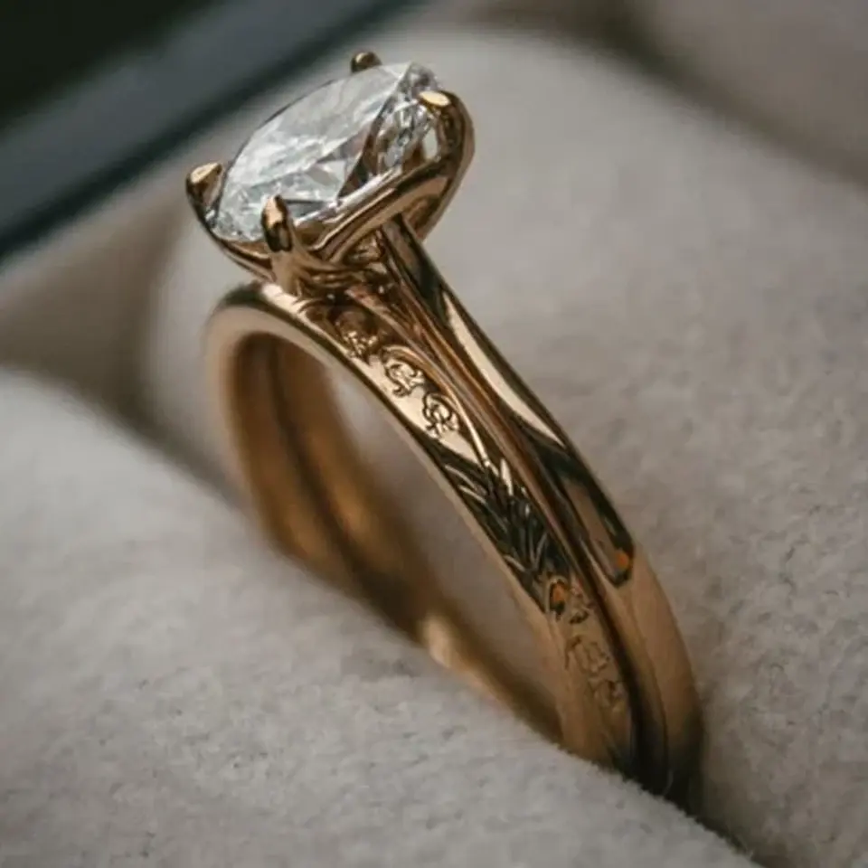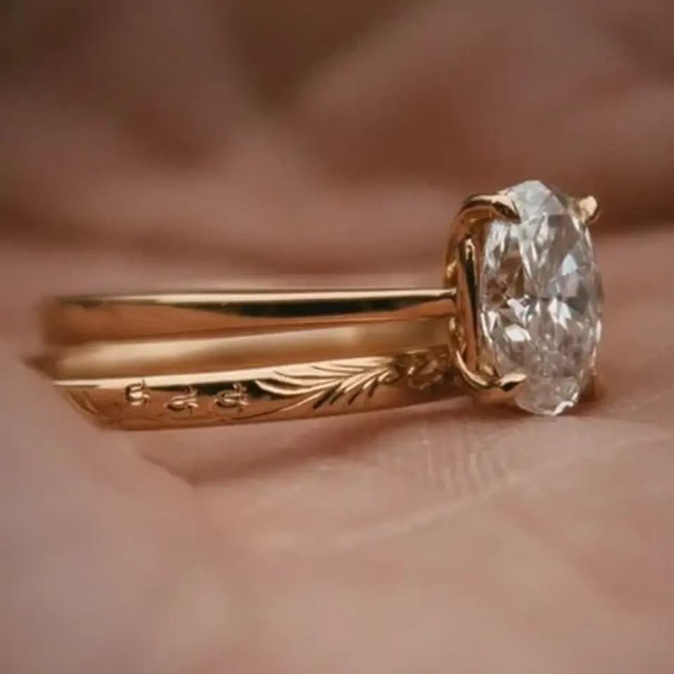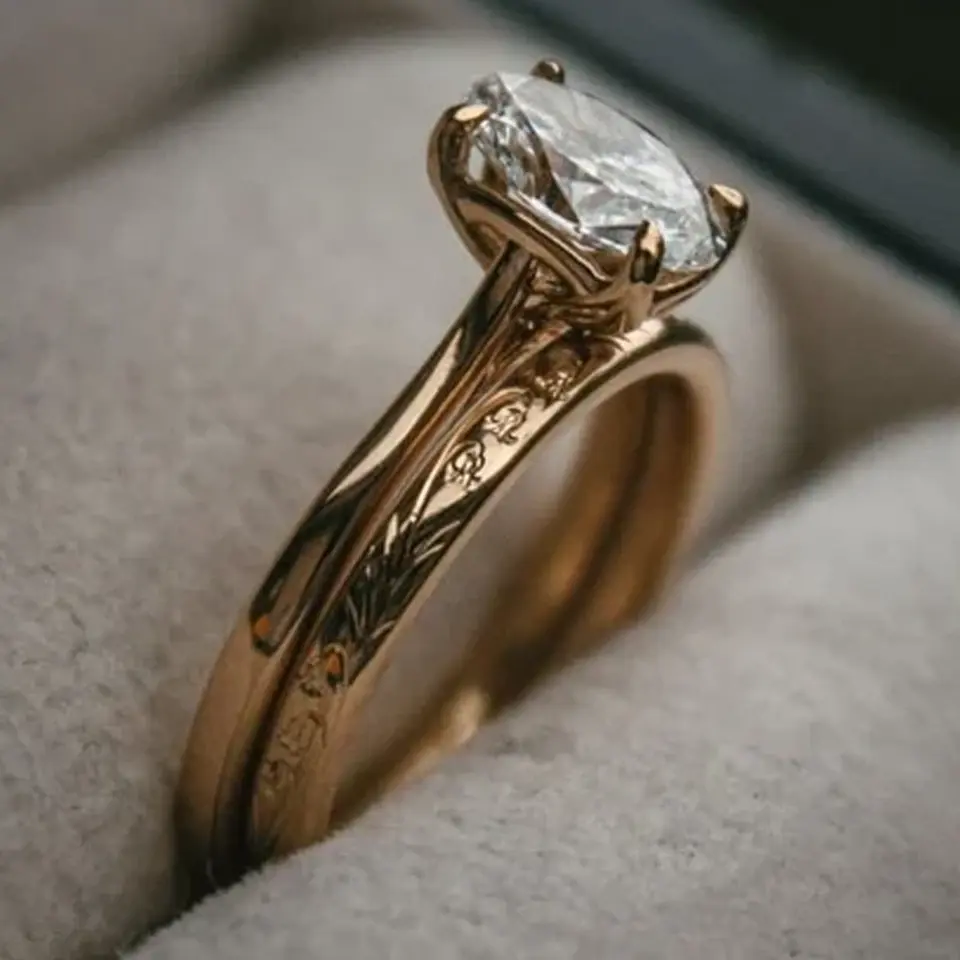 1.3CT Brilliant Cut Moissanite Engagement Bridal Gift Ring Set 14K Yellow Gold Plated Sterling Silver Prong Setting Romantic