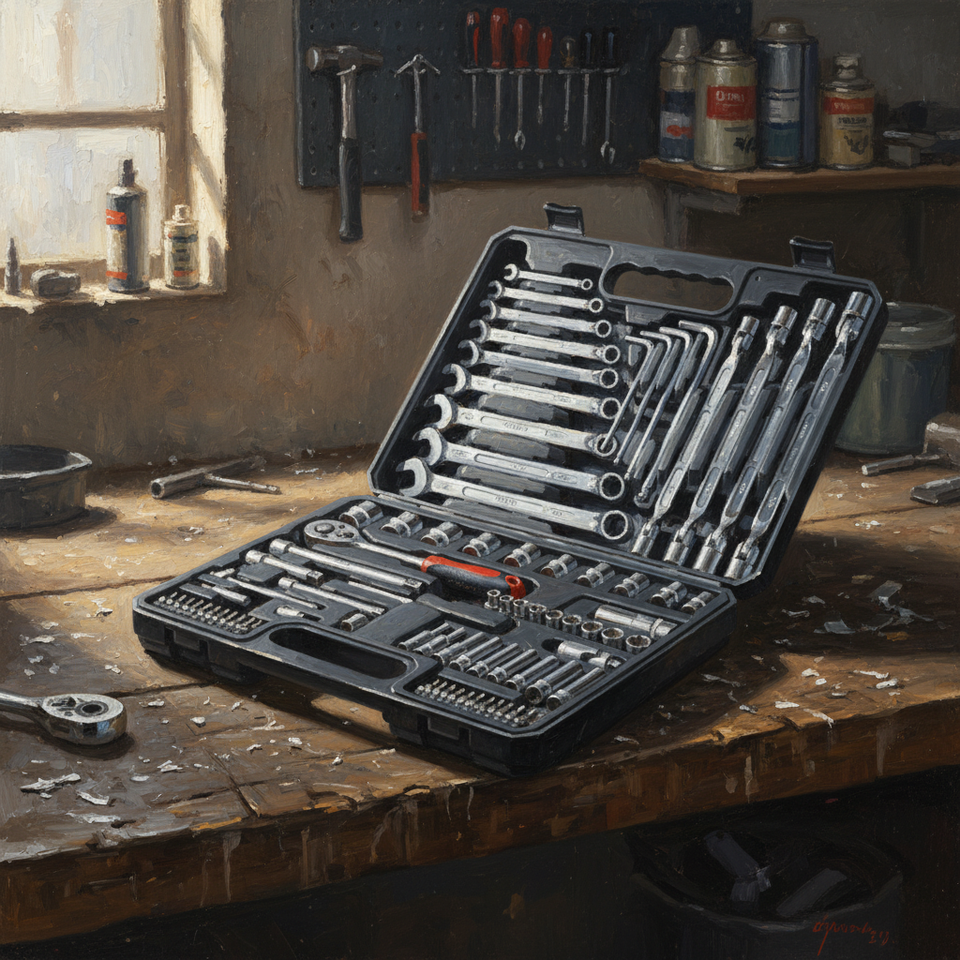 hex keys, extension bar, SPARK PLUG, universal joints, ratchet handle, Adapters, Socket, deep socket, spinner handle, sliding T bar, bits, wrenchtool includes