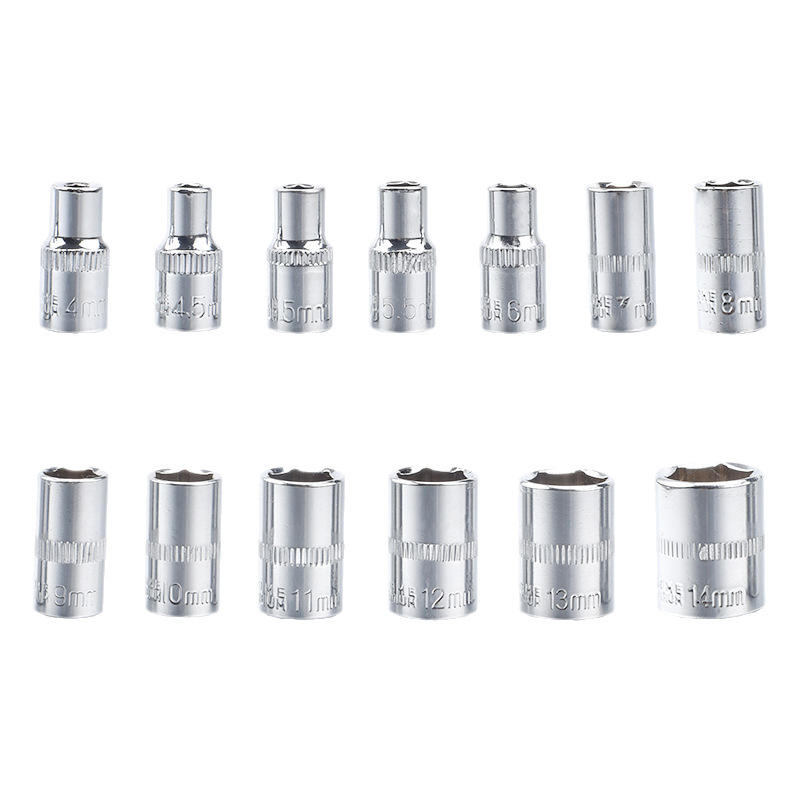 1/4 In Hex Socket Set 4-14mm Chrome Plated Industrial Grade Automotive Repair Tools