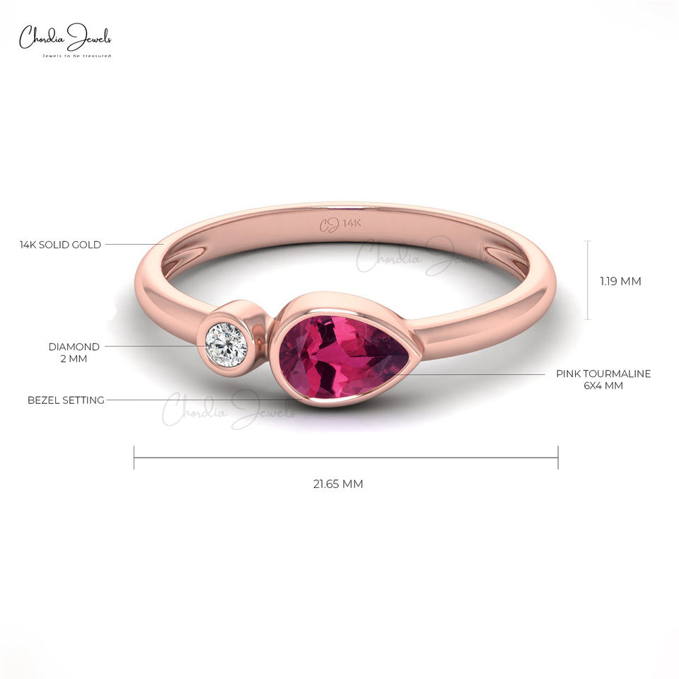 1/4 TCW Pear Cut Tourmaline Bezel Set 14K Solid Gold Diamond Ring Pink OEM/ODM Wedding Jewelry Band Wholesale Gold Band Jewelry