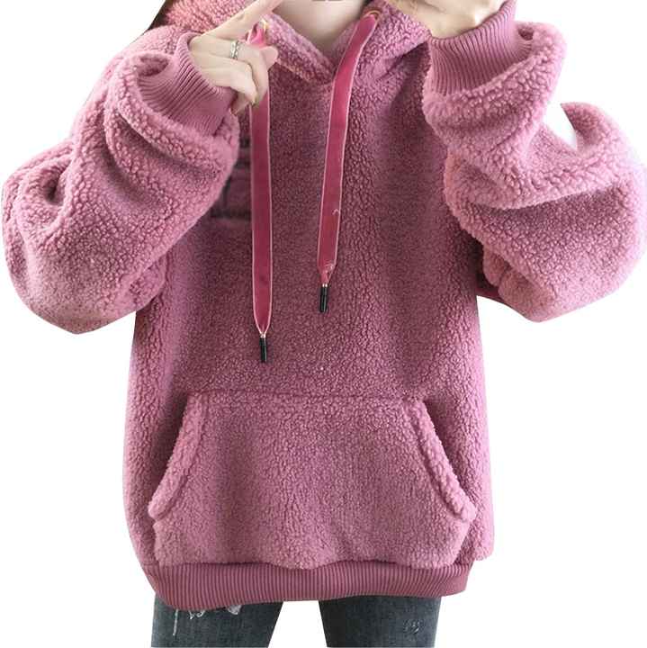 1/4 Zip Women's Fleece Fuzzy Pullover Hoodie with Pockets Sherpa Sweatshirt Solid Winter Warm Tops Plus Size Washed Spring