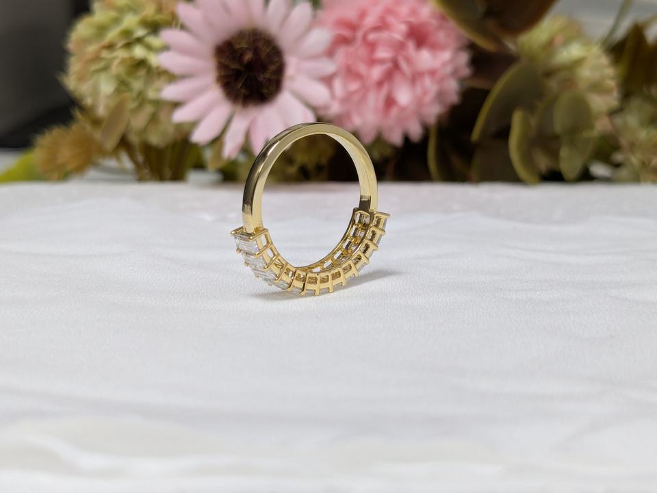 1.45 Ct Emerald Cut Lab Grown Diamond Half Eternity Classic Wedding Band Fine Jewelry Solid 14K Yellow Gold for Women