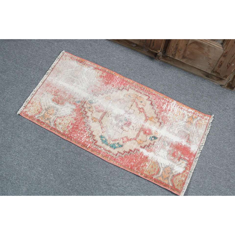 1.4x2.8 ft Rug, Turkish Rug, Vintage Red Wool Patchwork Rug