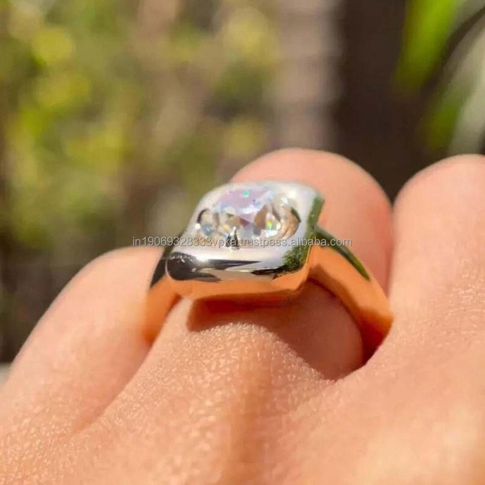 1.50 CT Cushion Cut Moissanite Diamond Sterling Silver Chunky Bezel Prong Set Solitaire Engagement Ring Unique Modern Wedding