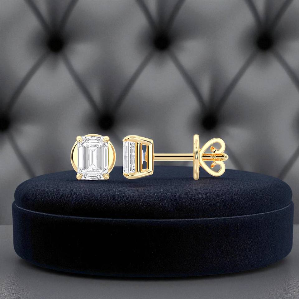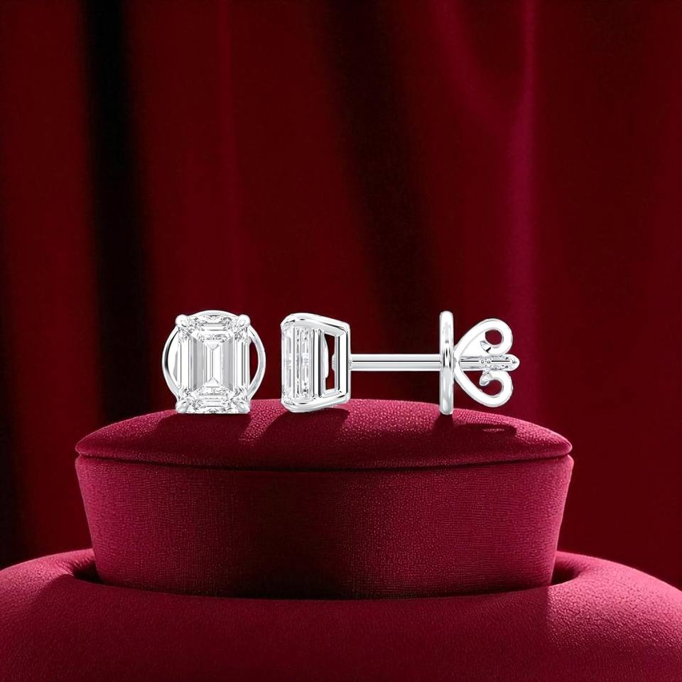 1.50 CT E-F/VVS-VS Emerald Cut Moissanite Stone Four Prong Set Stud Earring Made in 925 Sterling Silver For Unisex