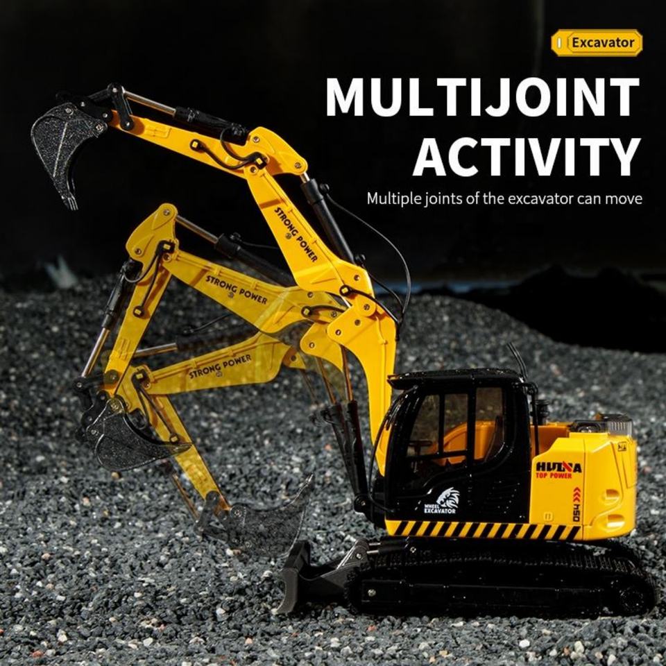 1/50 Scale HUINA 1726 Static Excavator Backhoe Loader Alloy Diecast Miniature Engineering and Construction Toy