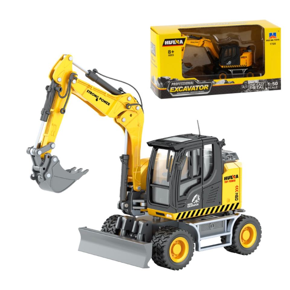 1/50 Scale Huina 1725 Alloy Metal Miniature Diecast Engineering Aluminum Static Backhoe Wheel Loader Construction Model Toy