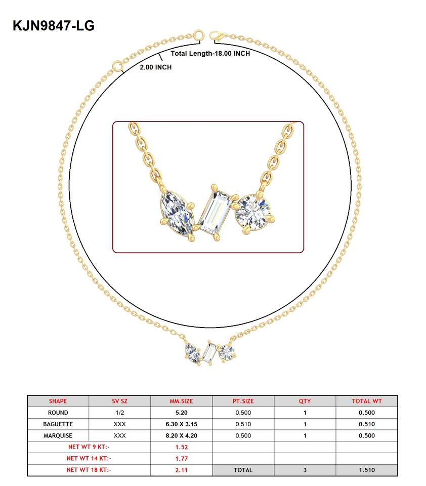 1.50Ct Baguette Marquise and round Lab Grown Diamond Pendant Necklace 14K White Gold Timeless Design for Women