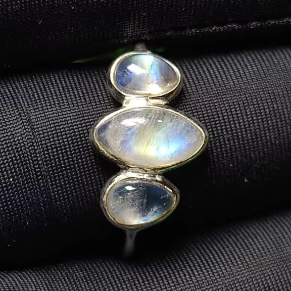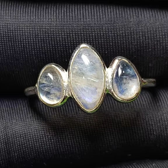 1.52 Carat Natural Rainbow Moonstone 925 Sterling Silver Ring with Rhodium Plating and Bezel Setting Fine Ring for Parties