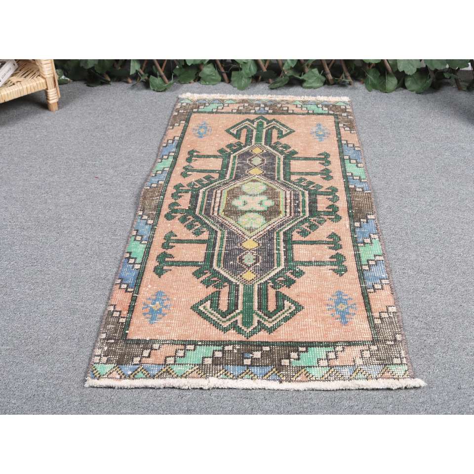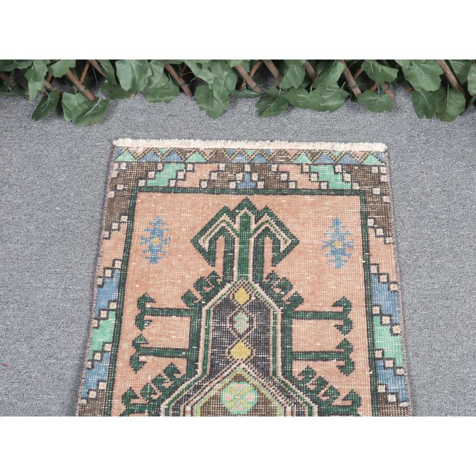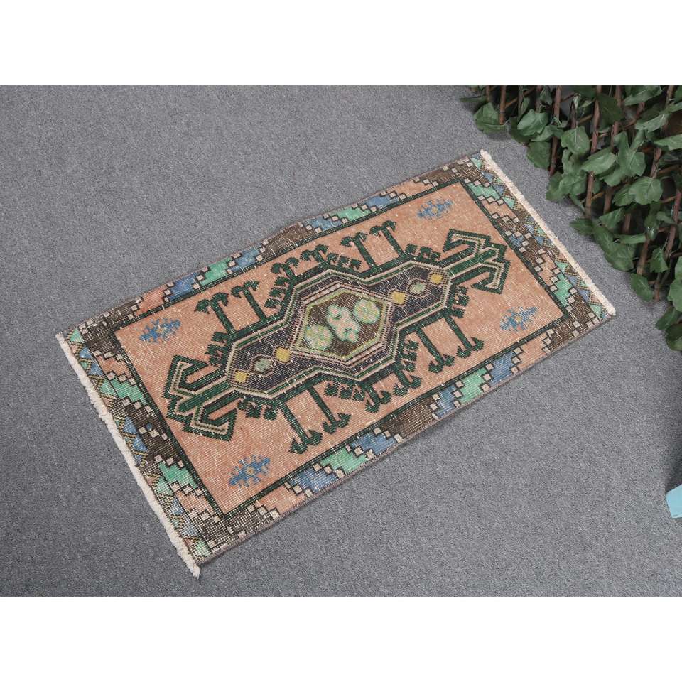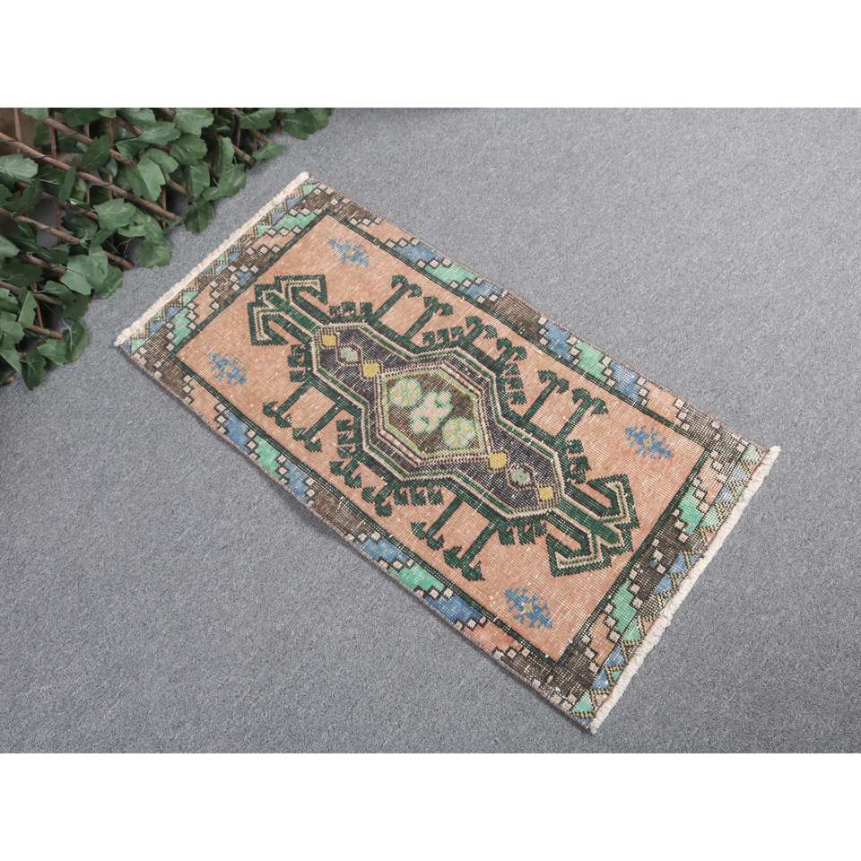 1.5x2.9 ft Turkish Rug, Vintage Small Rug, Brown Green Floral Wool Rug