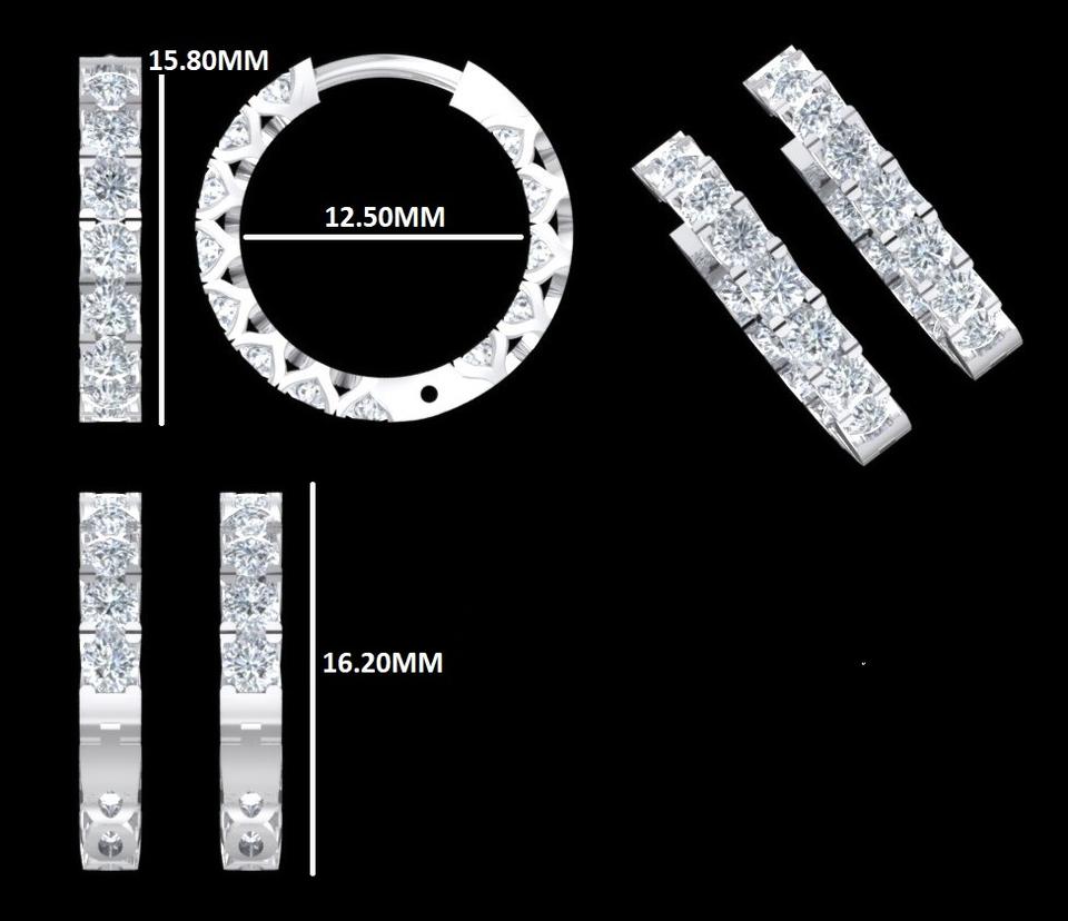 1.60Ct Round Cut Lab Grown Diamond Hoop Earrings, Anniversary Gift For Women's Solid 10K White Gold Earrings, White Gold Jewelry
