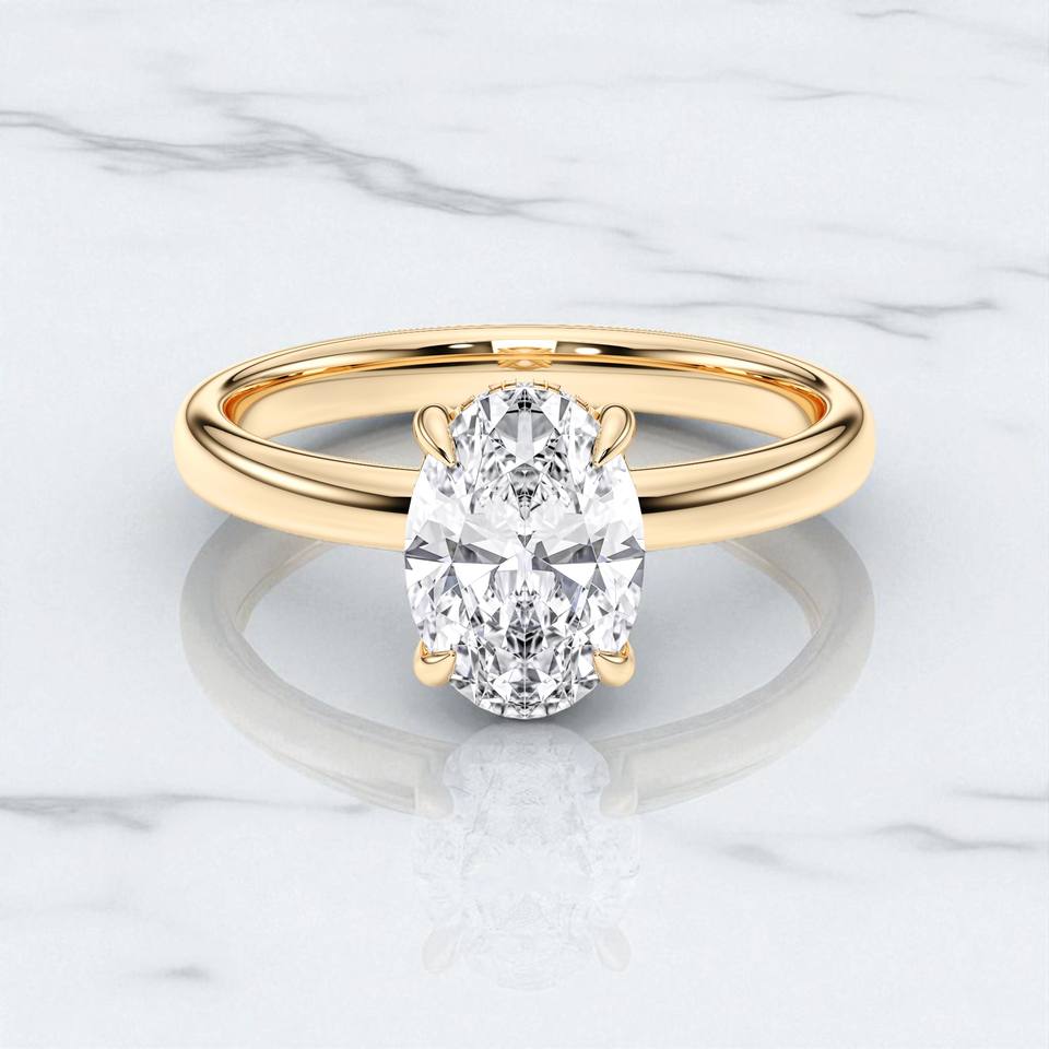 1.66 Carat F-G/VS Lab Grown Oval & Round Shape Diamond Prong Set solitaire Engagement Ring in 10K,14K,18K Solid Gold For Women