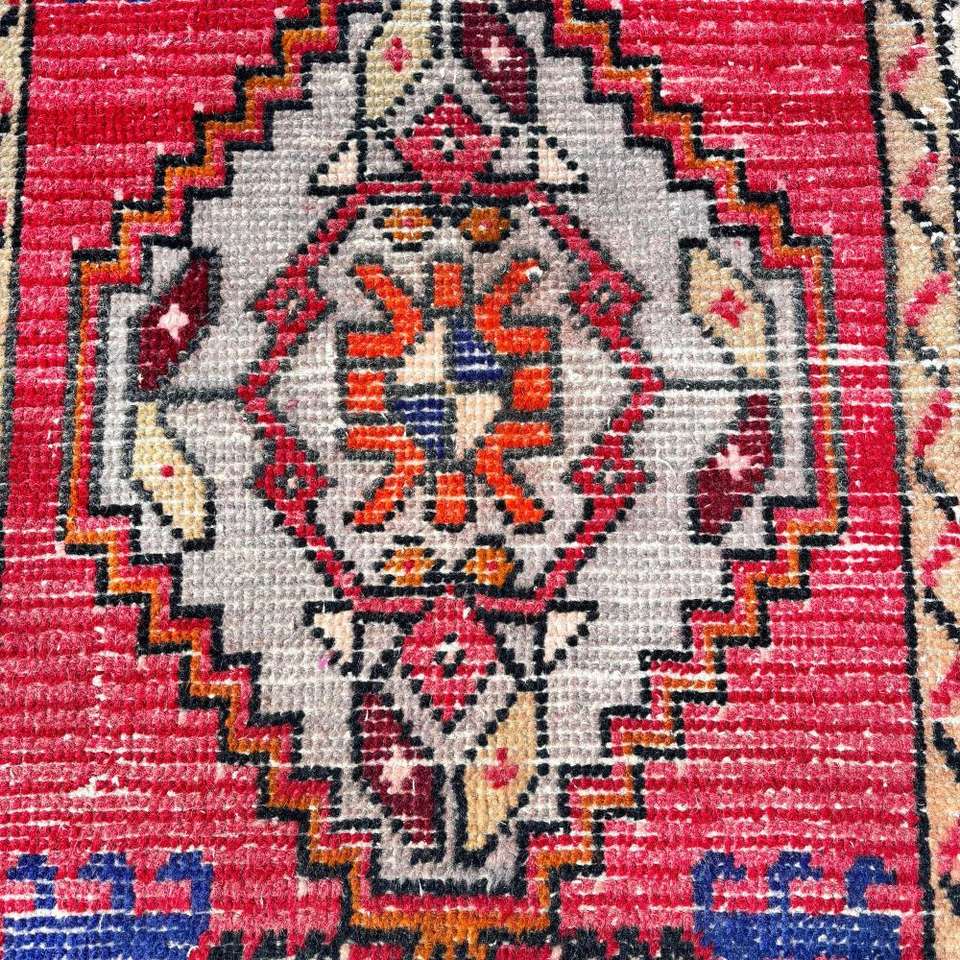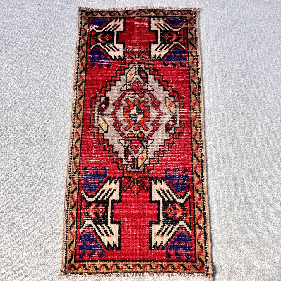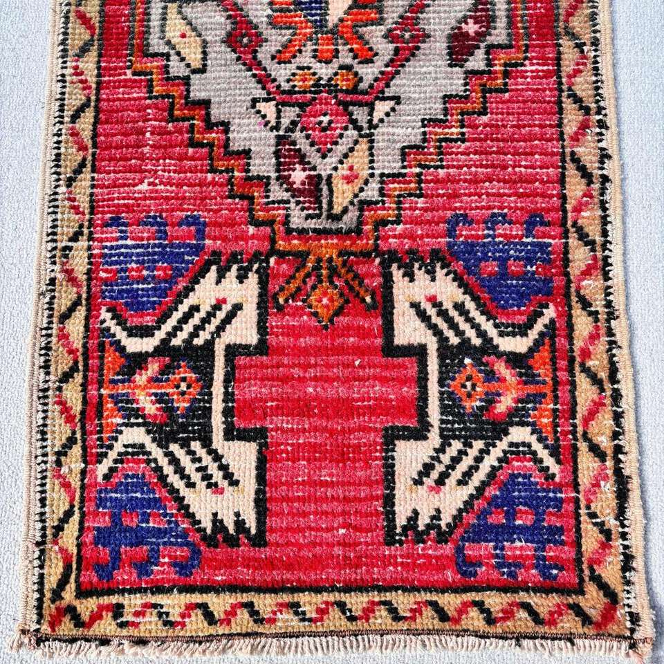 1.6x3.2 ft Rug, Turkish Vintage Rug, Red Blue Southwestern Wool Rug