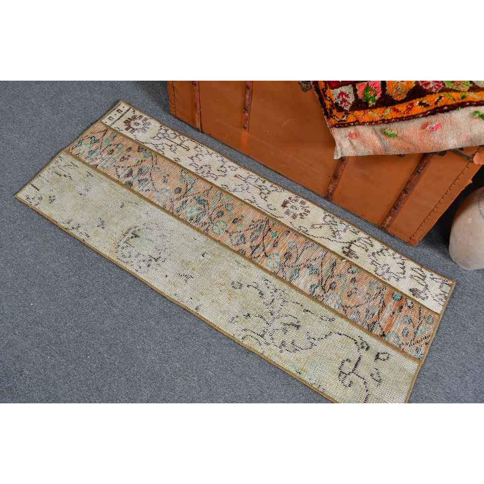 1.8x4.3 ft Rug, Turkish Vintage Rug, Brown Wool Rug