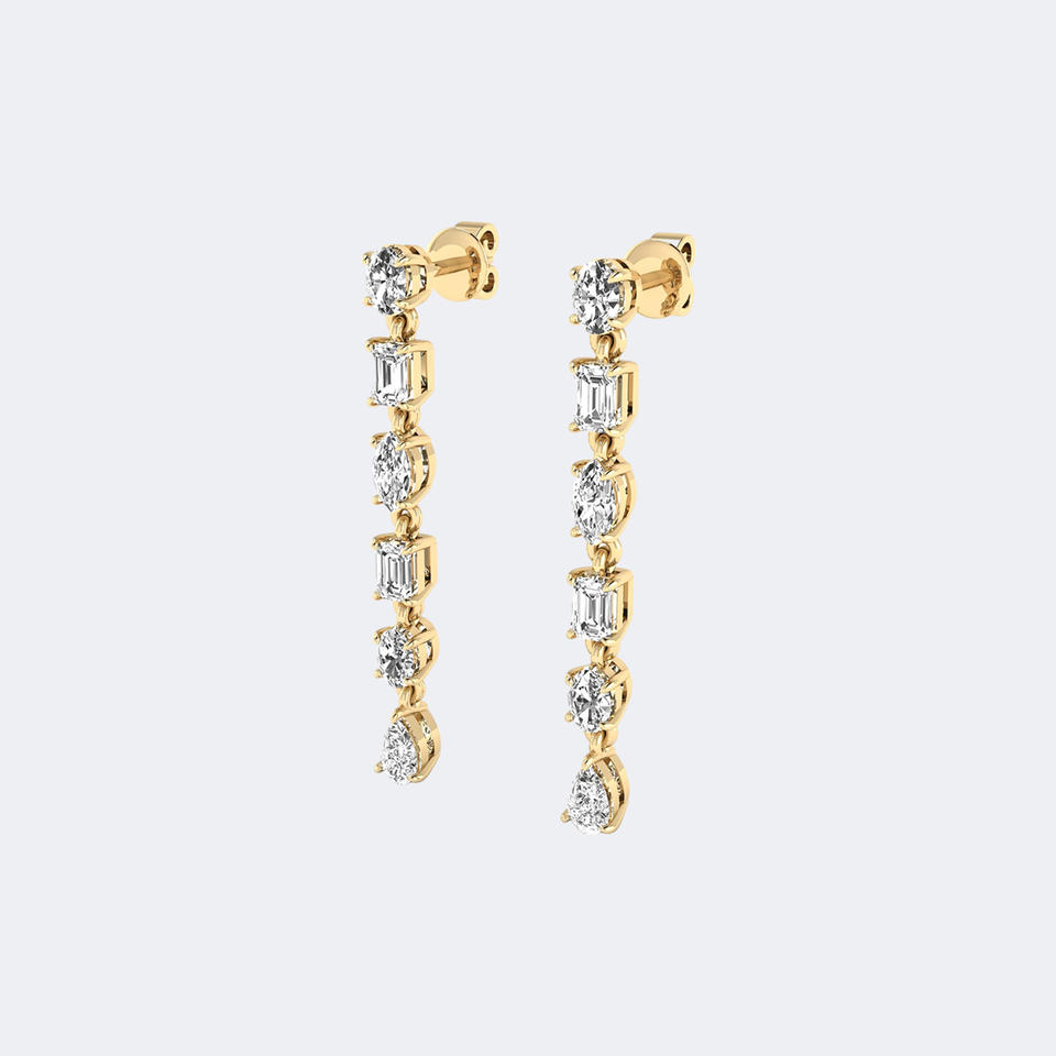 1.95CTW Multi Shape Diamond Drop Linear Earrings 14k Gold Lab Grown Marquise Emerald Oval Pear Dangle Jewelry for Women