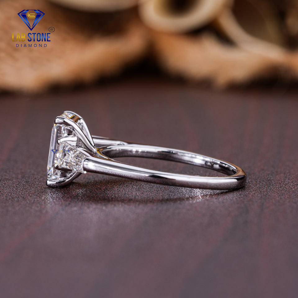 1.97 TDW Emerald and tapper baguette Cut Diamond Ring 18k White Gold Three Stone Ring Cvd/Hpht Diamond Lab Stone Jewelry