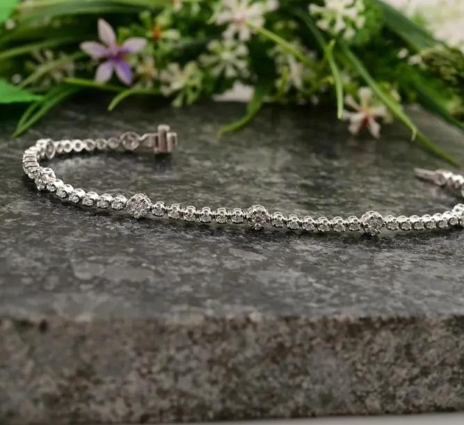 1.98 Ct Lab Grown CVD Diamond Tennis Bracelet Dainty Gold 14K Engagement Charm Bracelet Rose Gold Plated Gift
