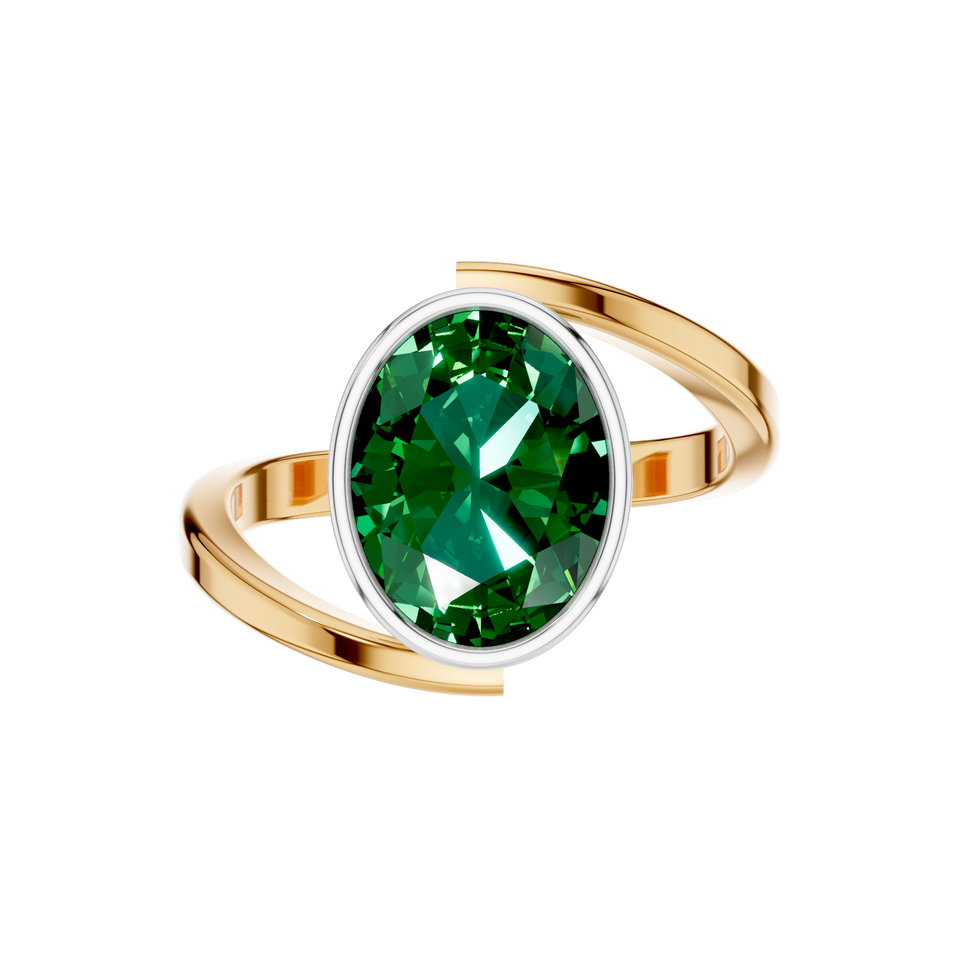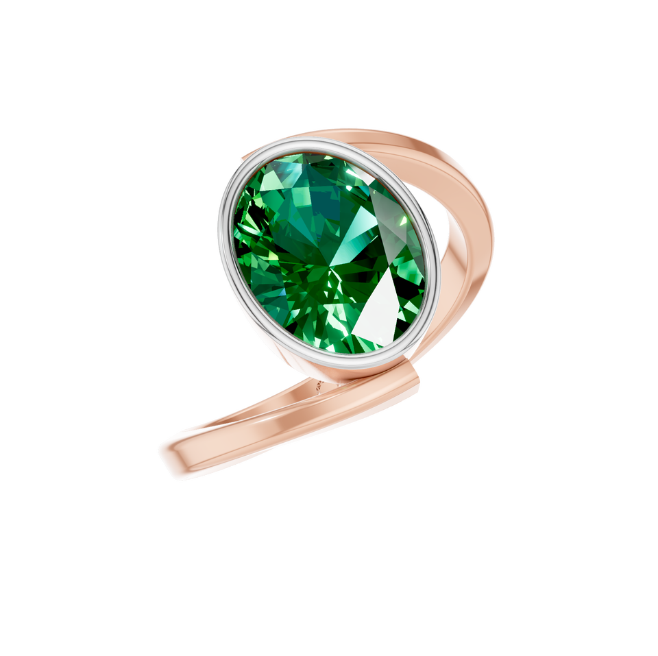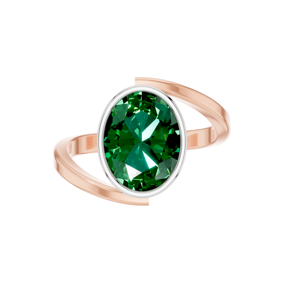 1 Carat Lab Grown Emerald Gemstone Ring Classic 14k Rose, Yellow and White Gold Plated Bezel Setting for Wedding Engagement